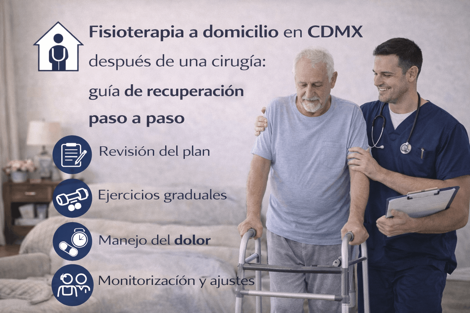 Si el paciente es adulto mayor o requiere apoyo, puede servir revisar cuidados del adulto mayor en el hogar, ya que ofrece recomendaciones prácticas para mantener seguridad y bienestar durante convalecencia.